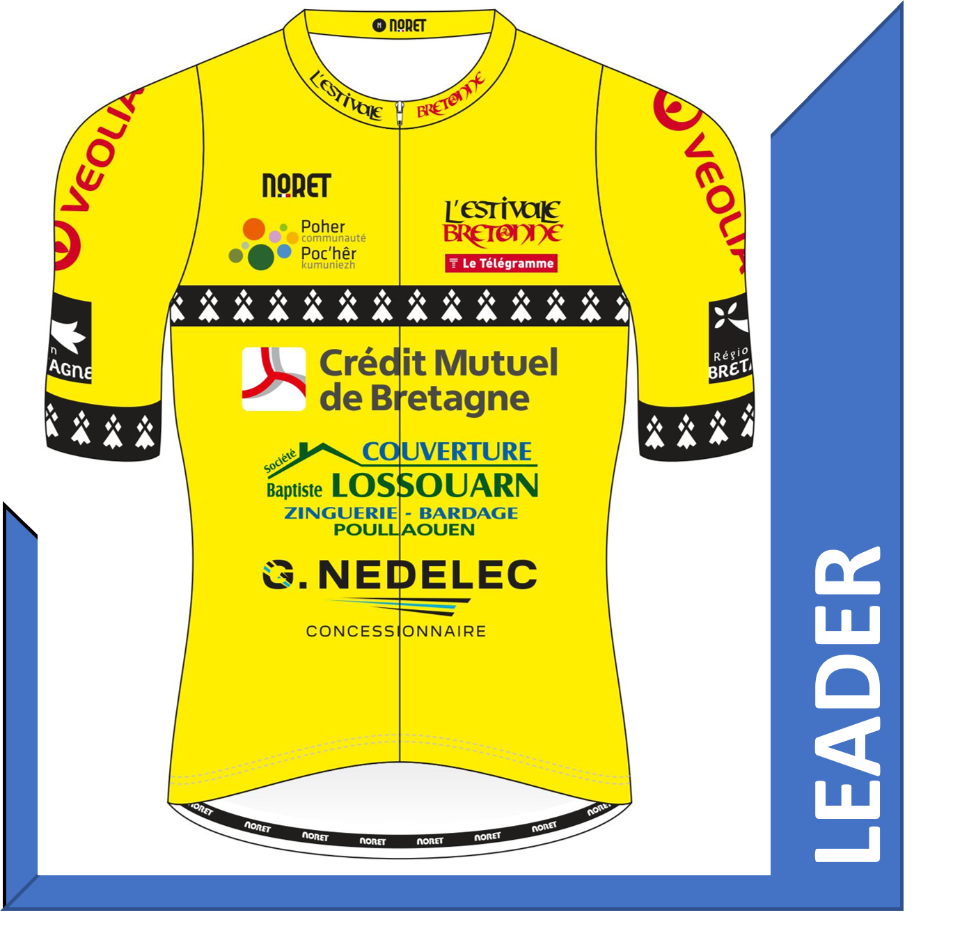 le maillot noir à hermine est porté par le coureur d'un club breton ayant le meilleur temps au classement général individuel.